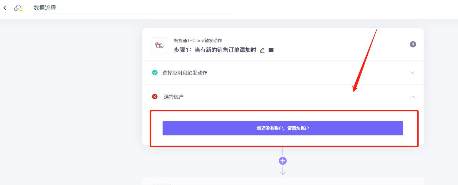 1.1、畅捷通T+Cloud授权时首先需要点击“请添加账户”