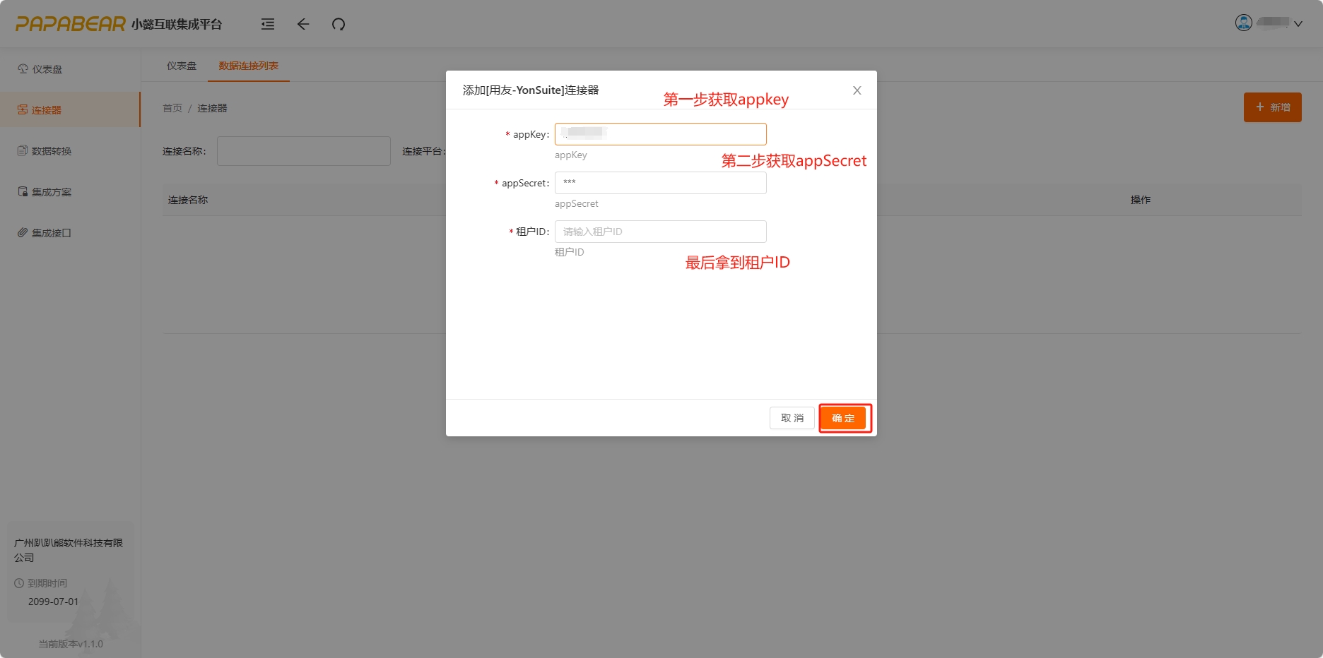 最后将得到的授权信息填写会数据中台便完成连接器的搭建啦!