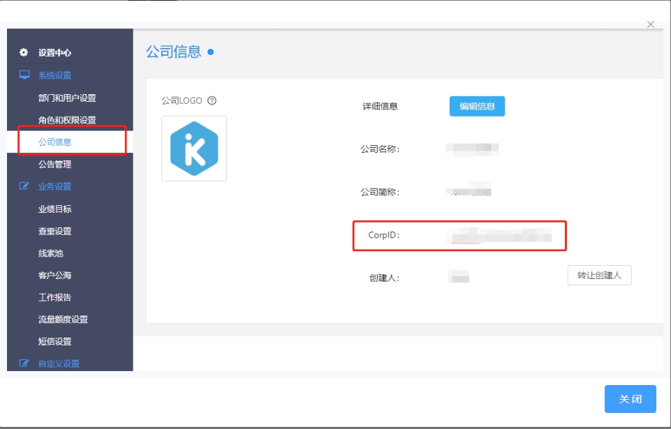 1.2、企业ID查询方式:登录帐号后点击顶部菜单中的“设置”