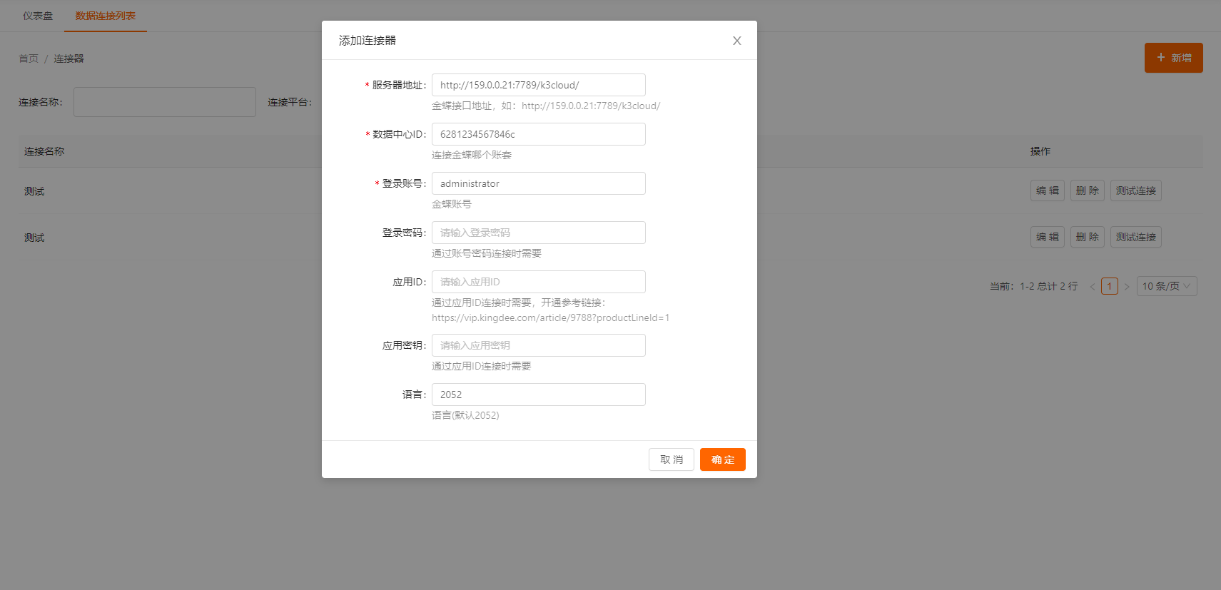连接器是用于跟各系统进行连接,新建连接器需要输入各系统要求的参数,参数用于各系统对连接身份的验证、鉴权。各系统的参数获取方式,请参考如何获得各系统的参数