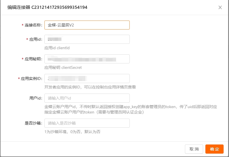 1、积加需要的连接器参数有:【应用id】,【应用密钥】,【应用实例】