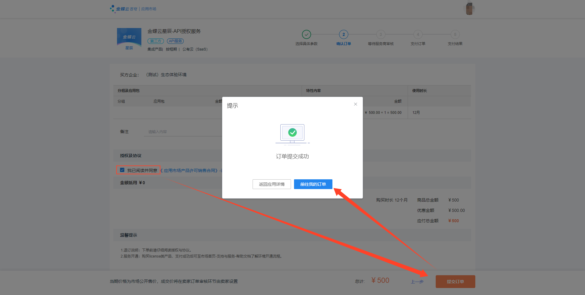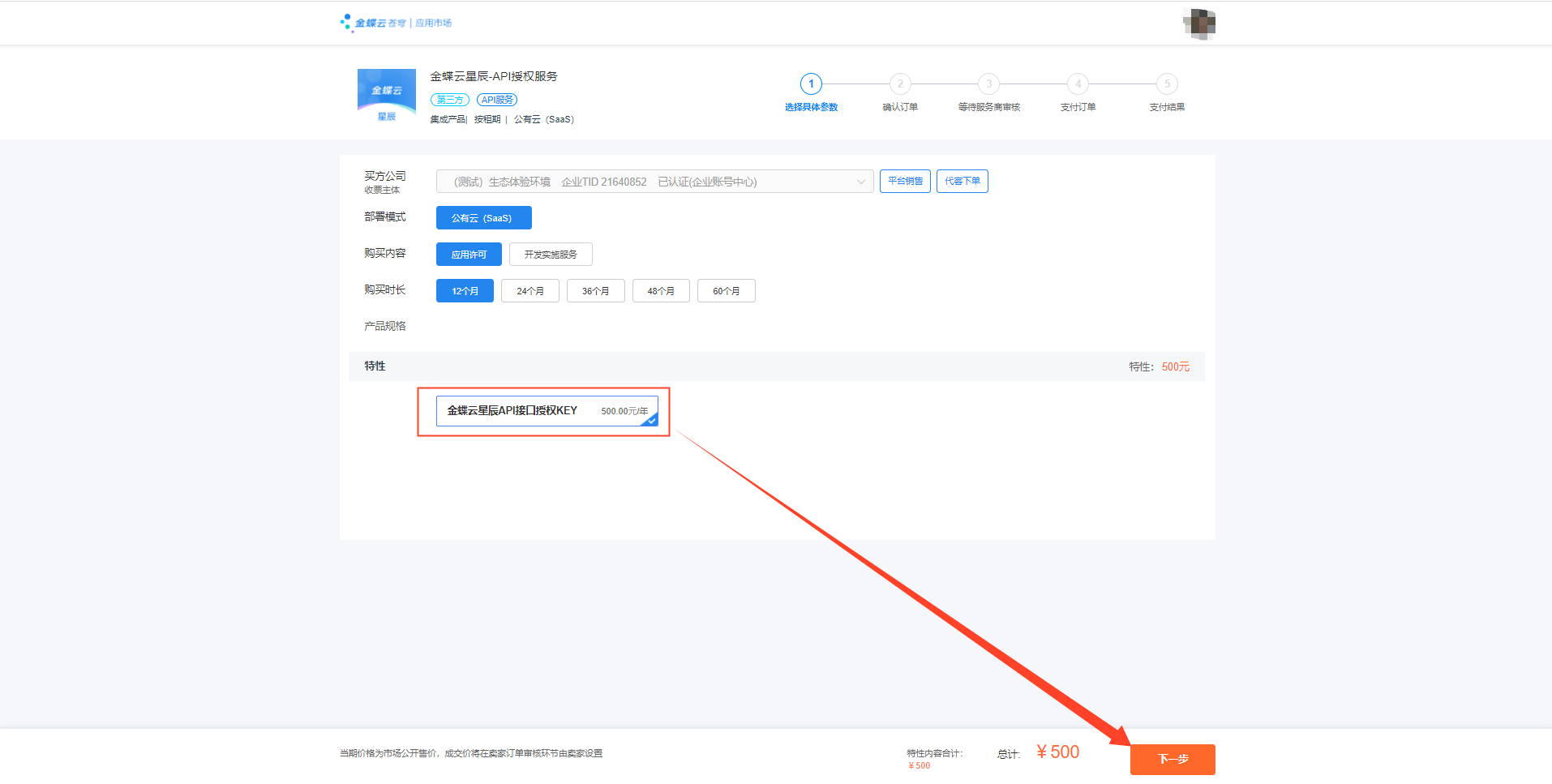 跳转到应用市场,选中需要购买服务的规格,点击【下一步】