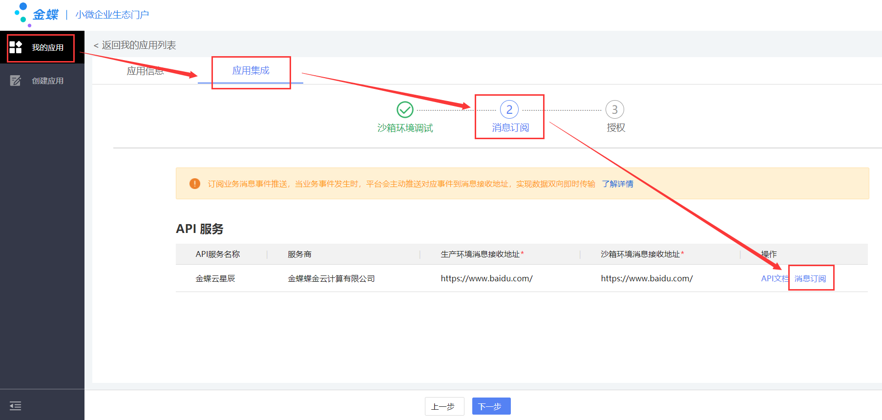 进入我的应用详情-消息订阅,打开API服务中的消息订阅。