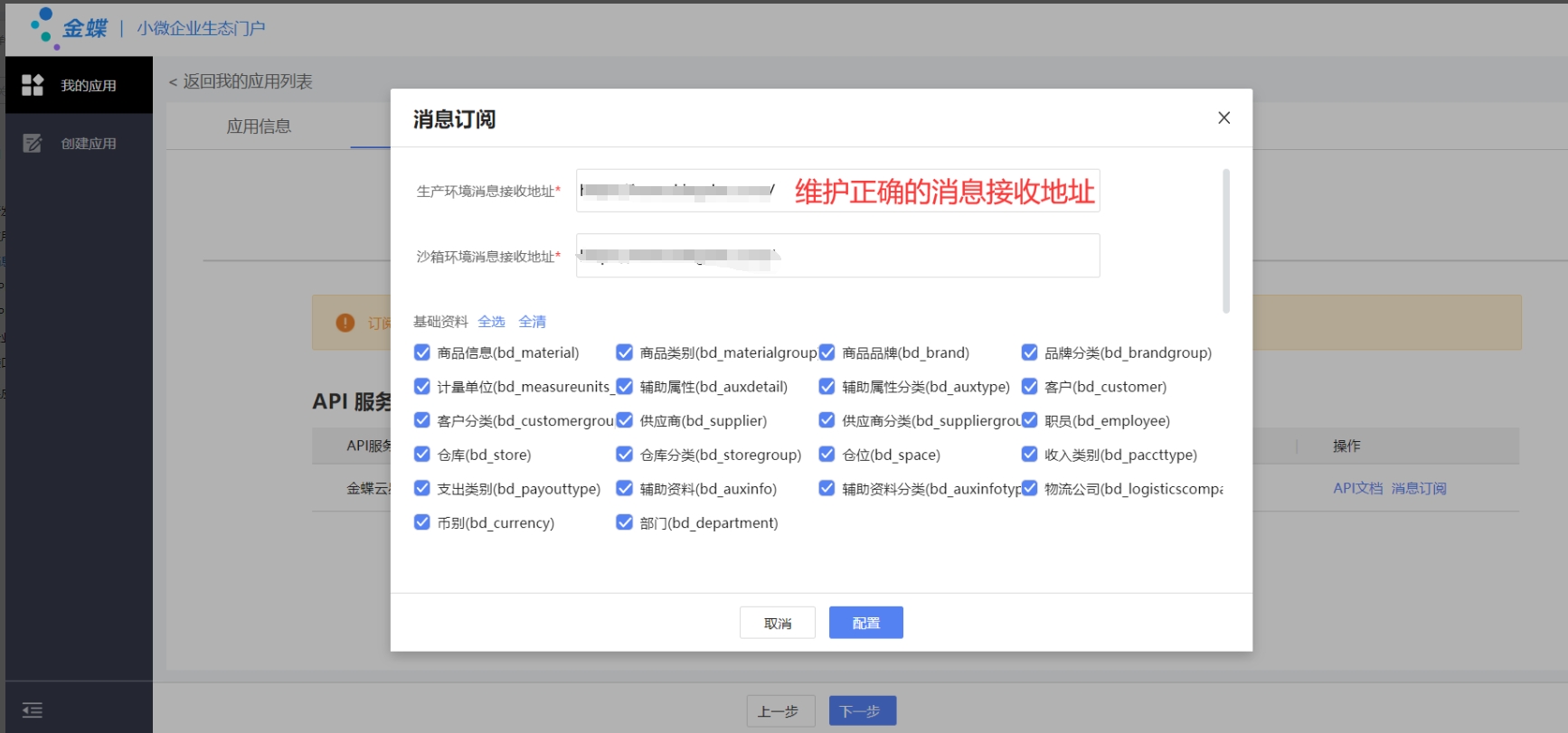 维护消息接收地址,生产和沙箱环境地址分开配置。