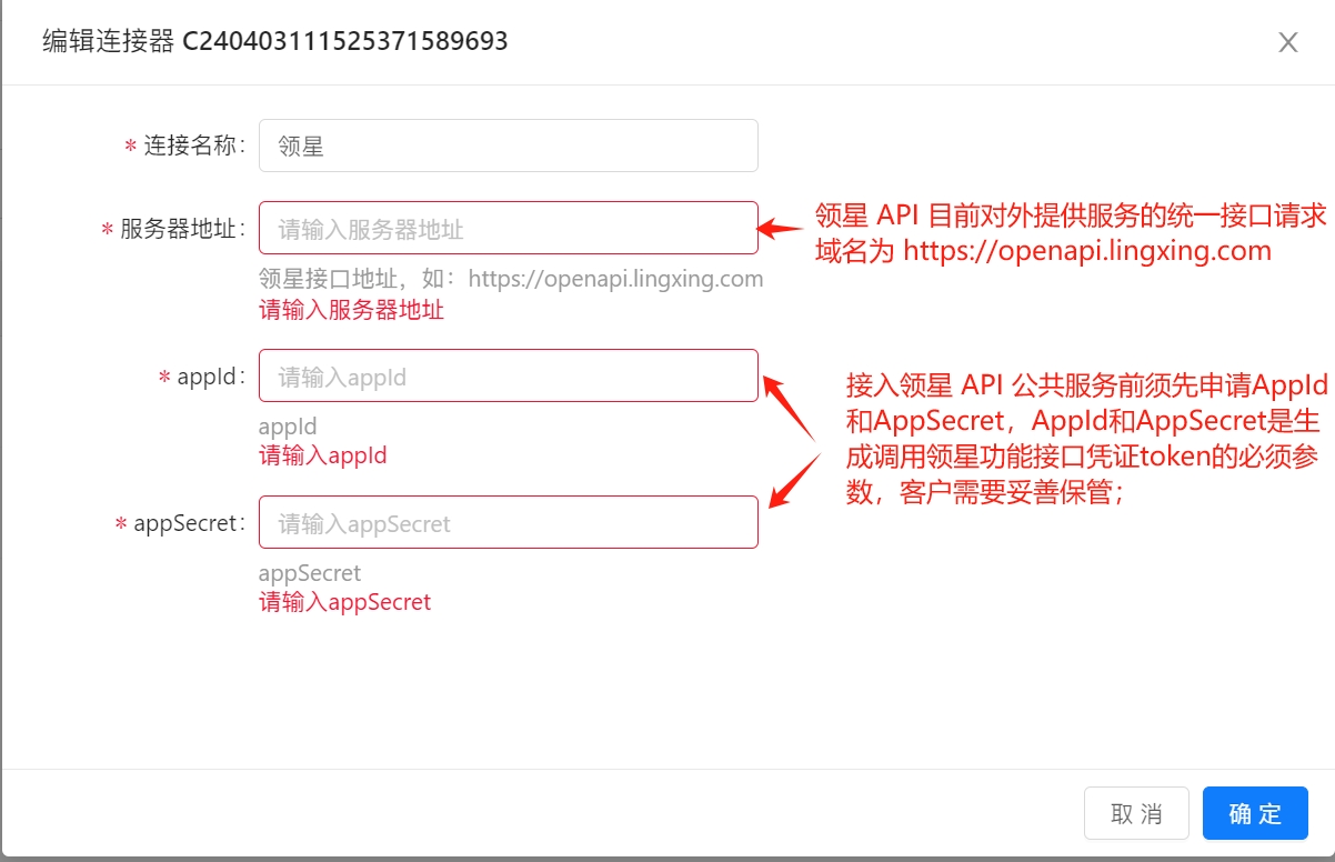1、接入领星前须先申请AppId和AppSecret,AppId和AppSecret是生成调用领星功能接口凭证token的必须参数,客户需要妥善保管;