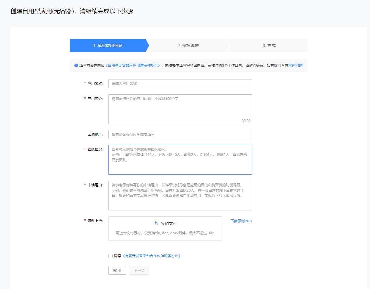 1.2、创建一个自用型应用:https://diy.youzanyun.com/application/create/type