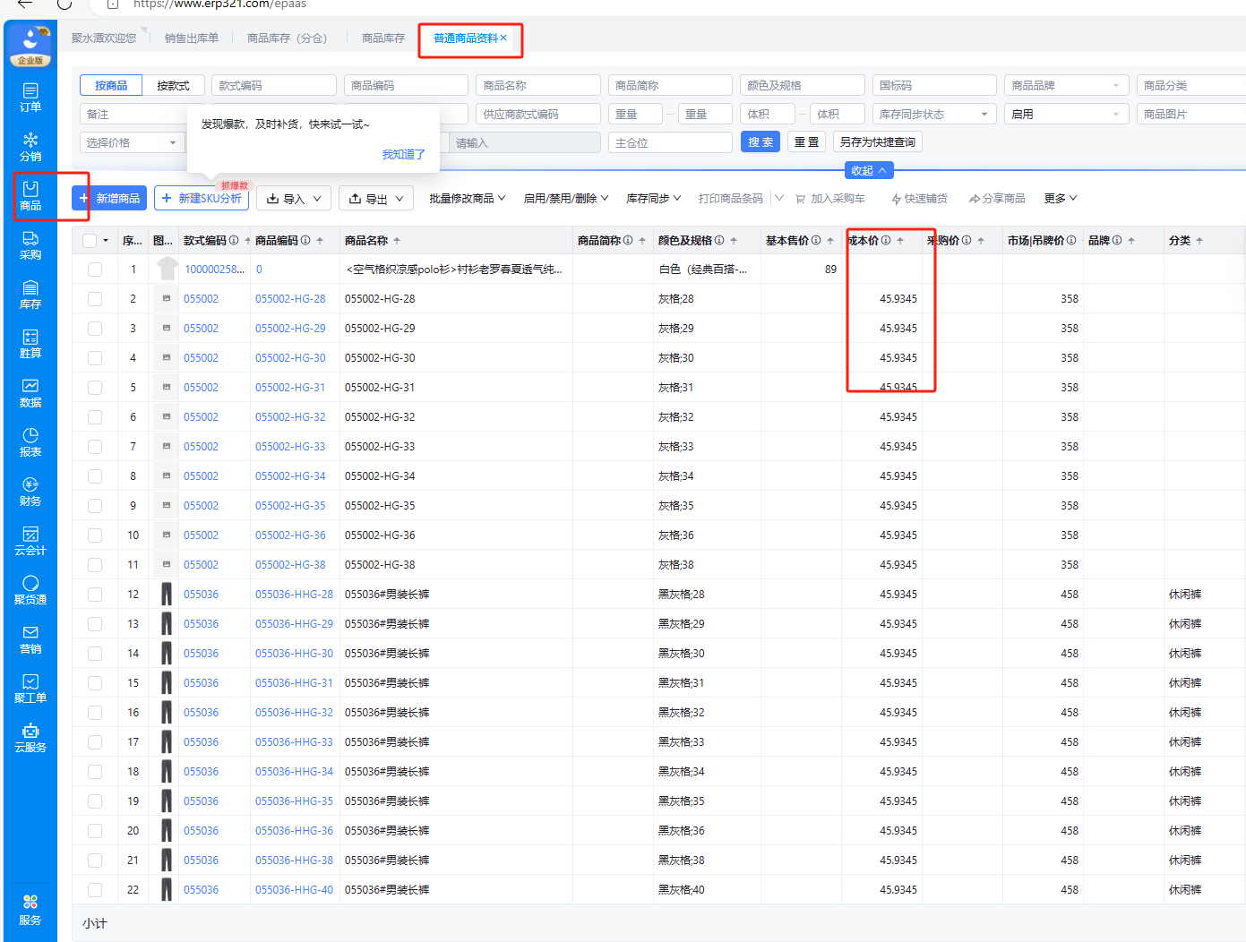 问: 能否将物料方案里的"成本价"字段写到目标平台的自定义字段?如图: