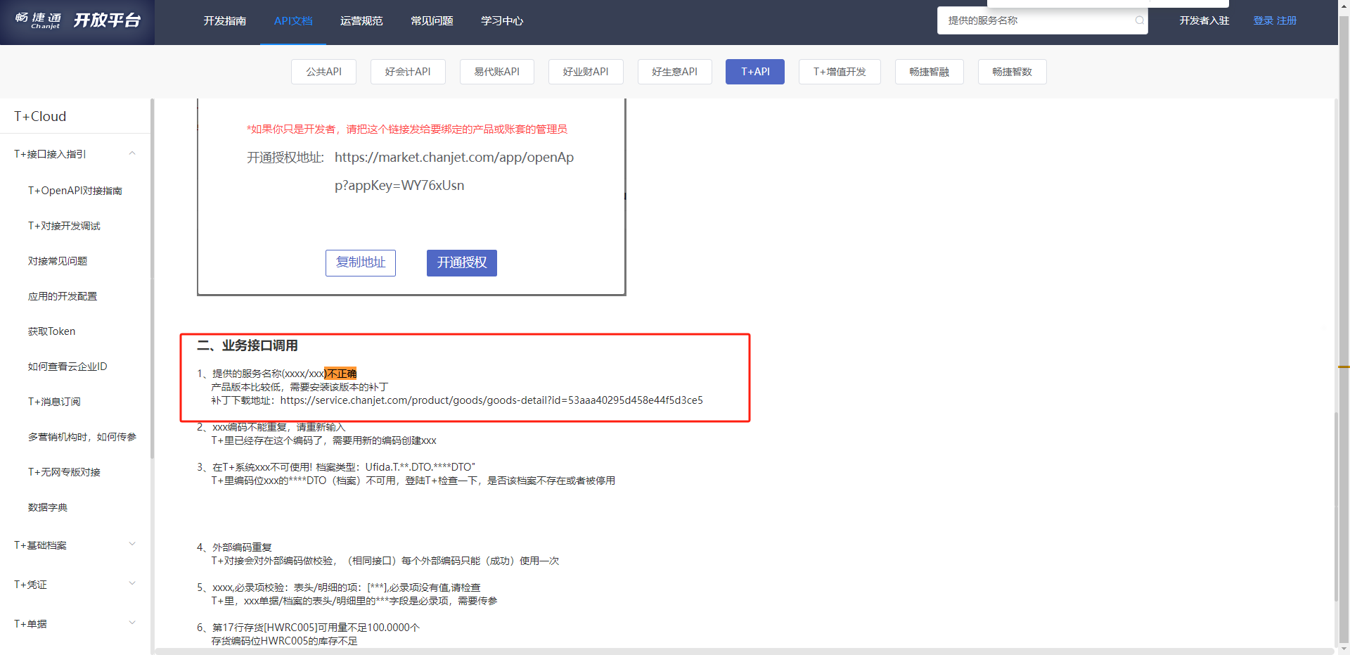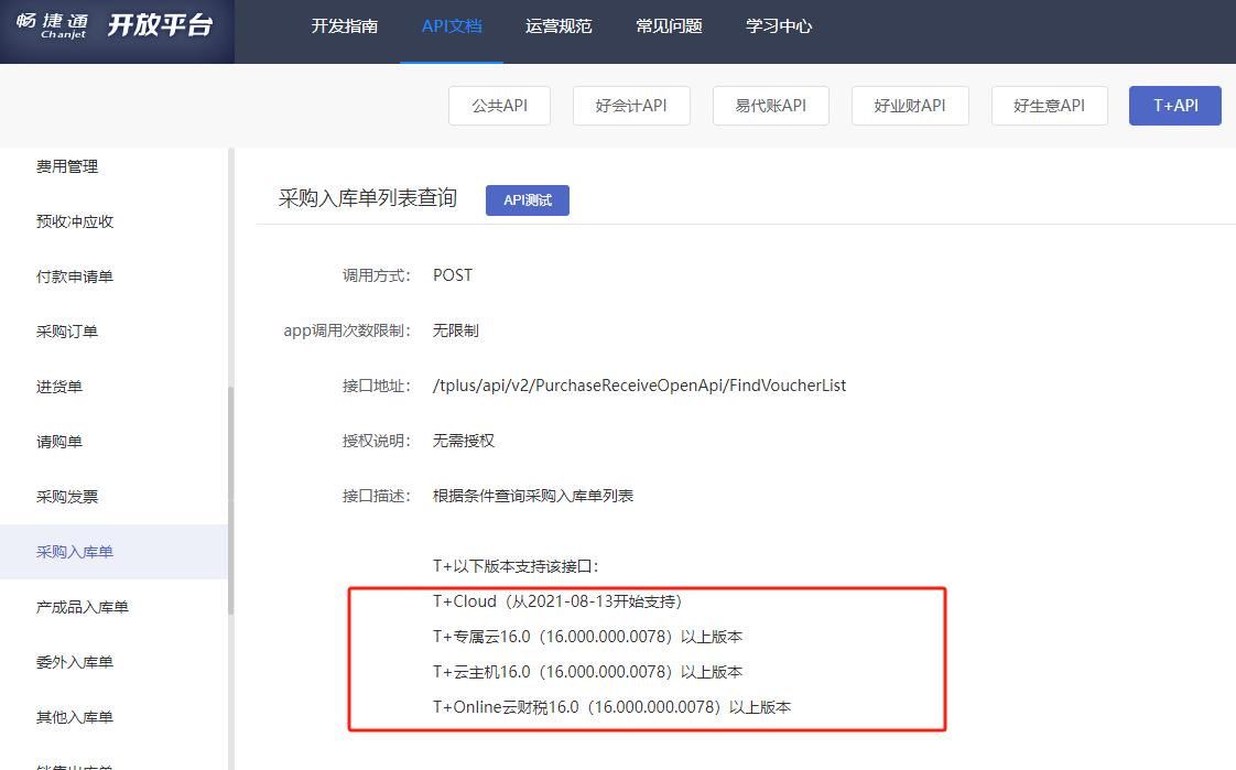畅捷通T+开台平台地址:https://open.chanjet.com/docs/file/apiFile/tcloud/tjrzy/t%2Bdjcjwt