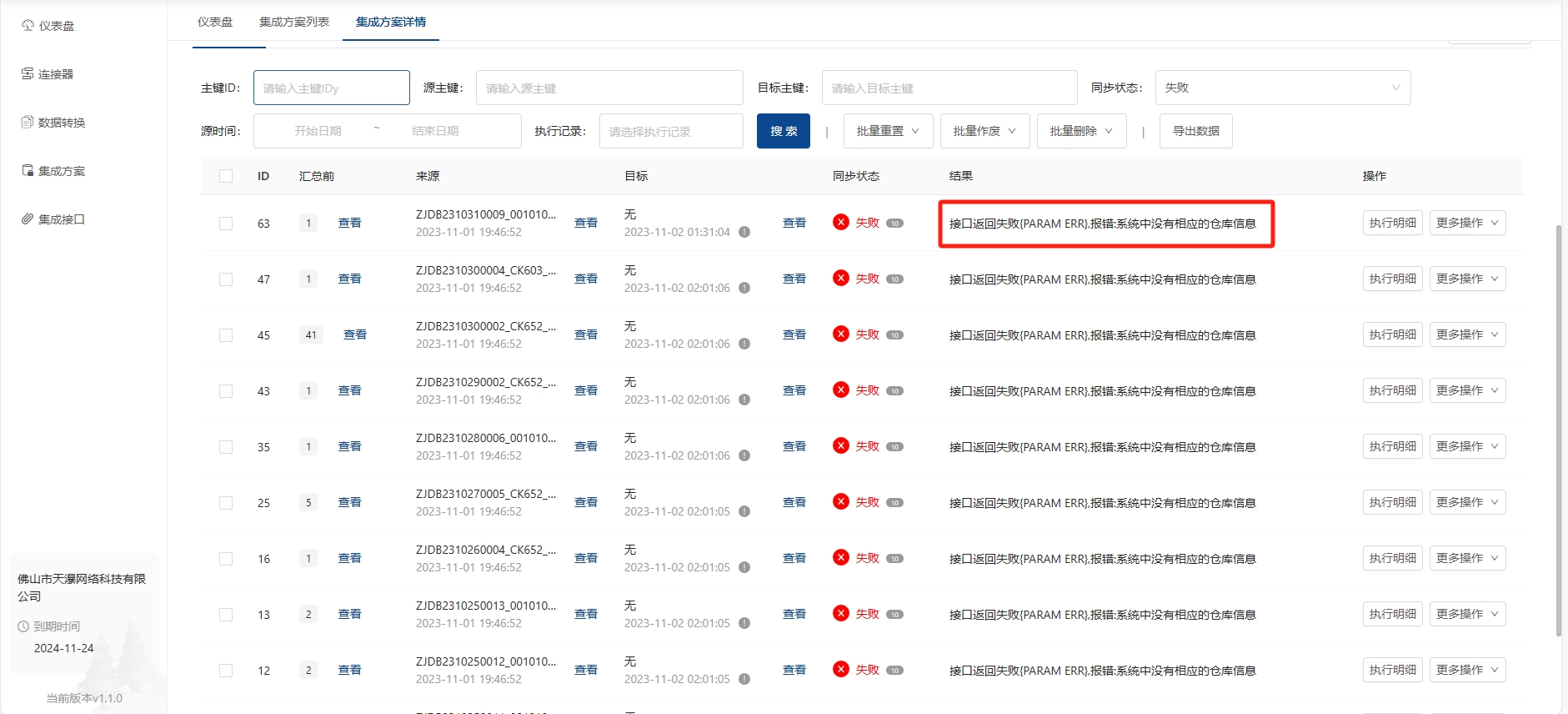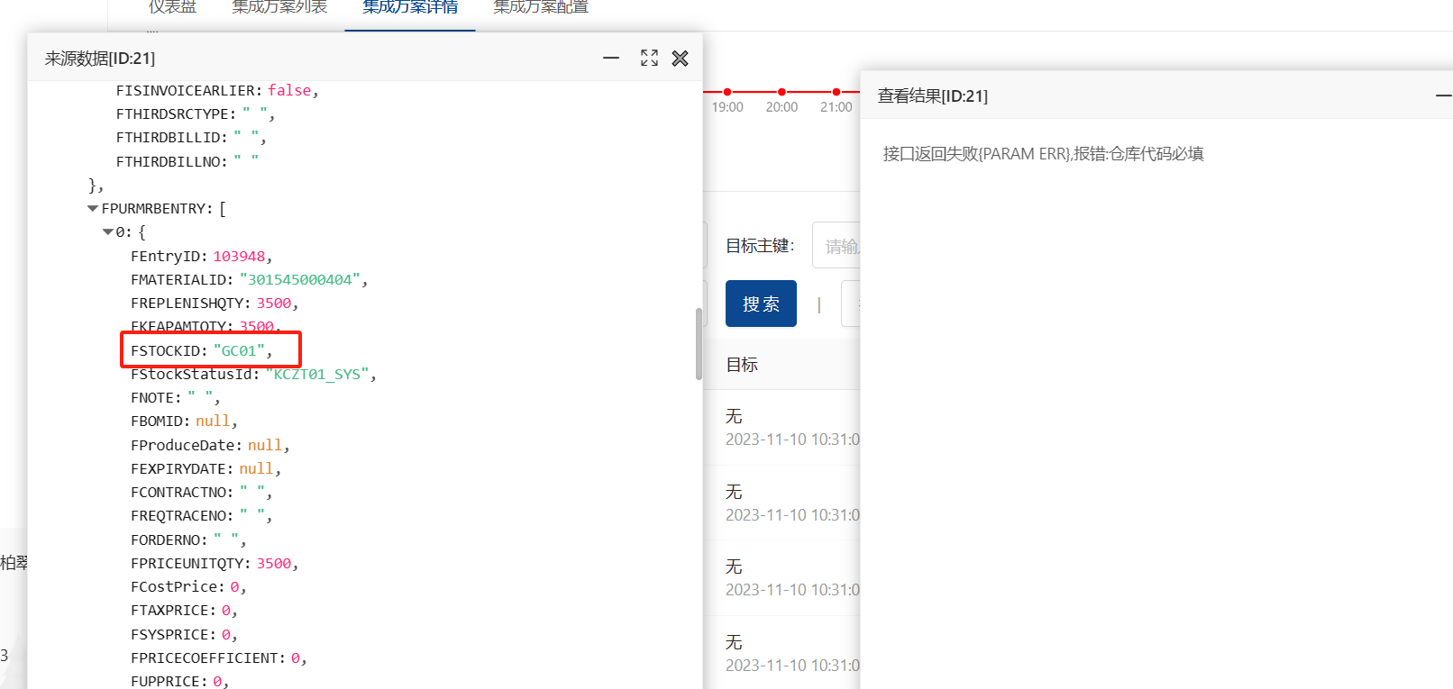 解决: 查看写入的json参数是否有传;有传报错就要查看目标系统是否维护好客户信息;没有传就要查看原系统是否有维护好客户信息或者在集成平台是否配置正确 注:任何单据传输成功的前提都需要两边系统的编码保持一致!!! 例:目标系统仓库信息没有维护好