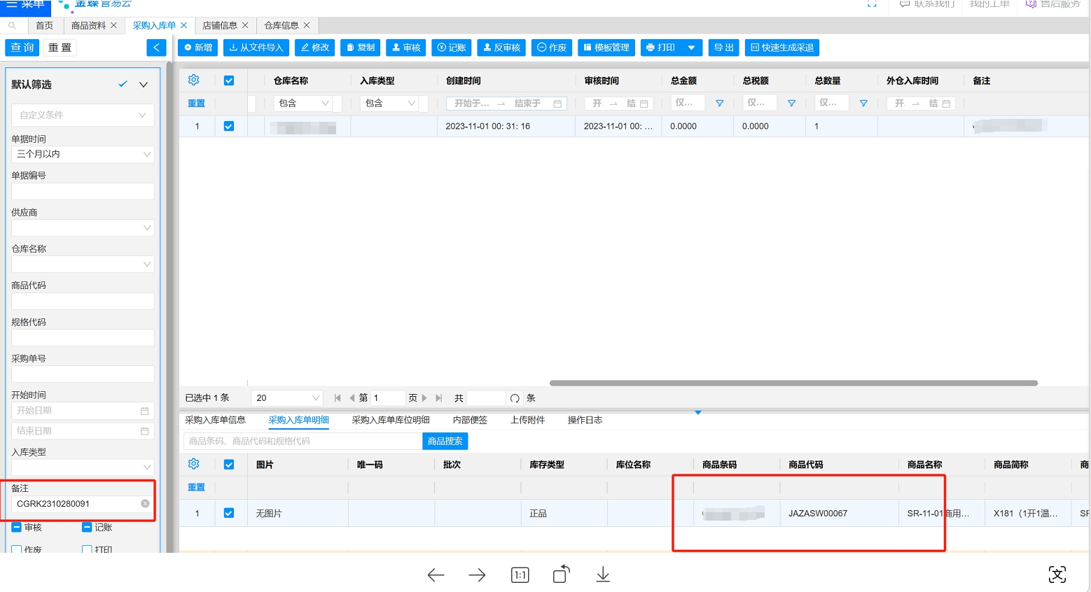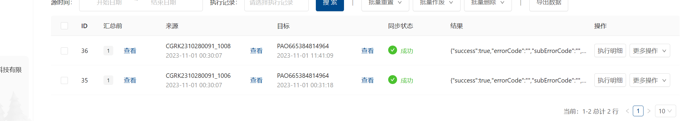 管易采购入库单: 问: 集成平台显示传输成功两条明细,但是在目标平台只看到一条明细,如下: