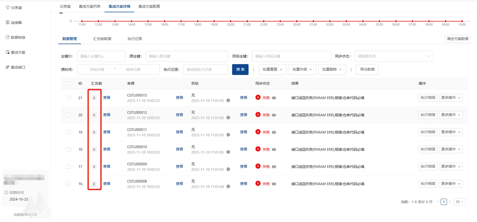!!! info 汇总前显示0条数据的证明这些数据结构都是在做汇总之前的数据,所以写入会直接报错,因为匹配不到汇总后的数据结构!!!